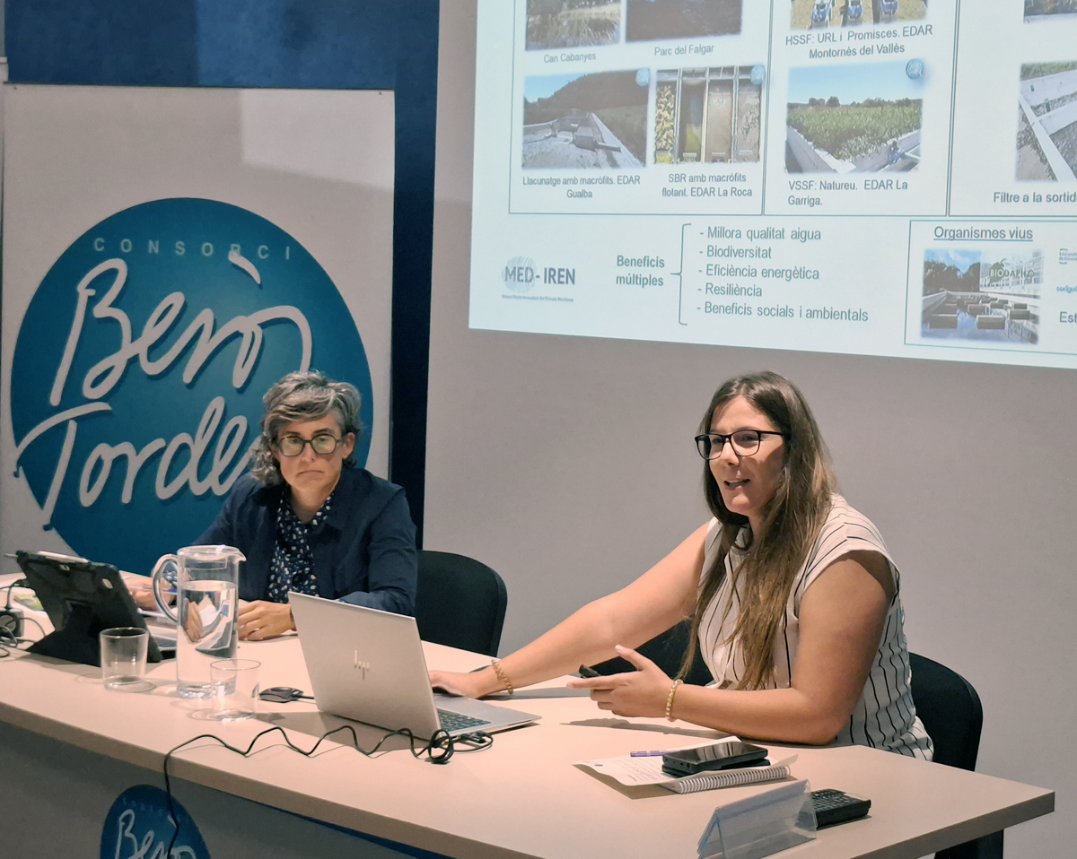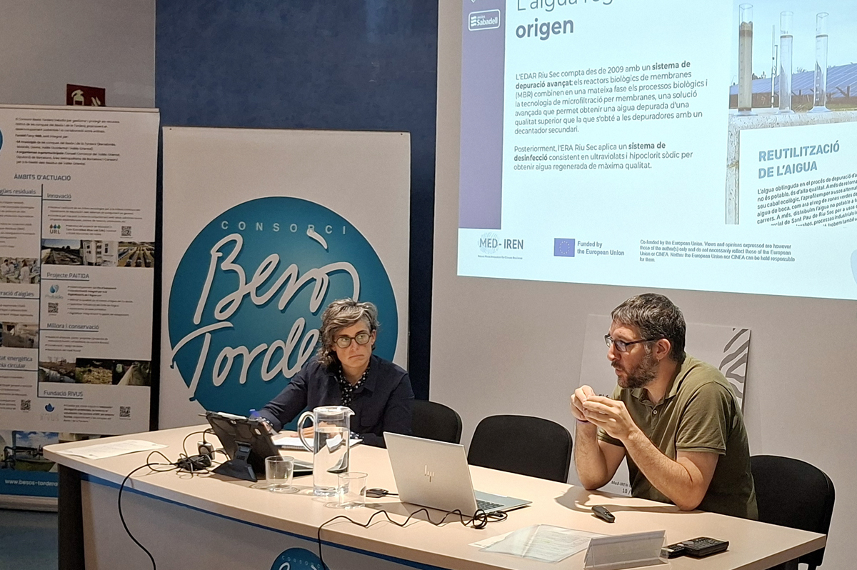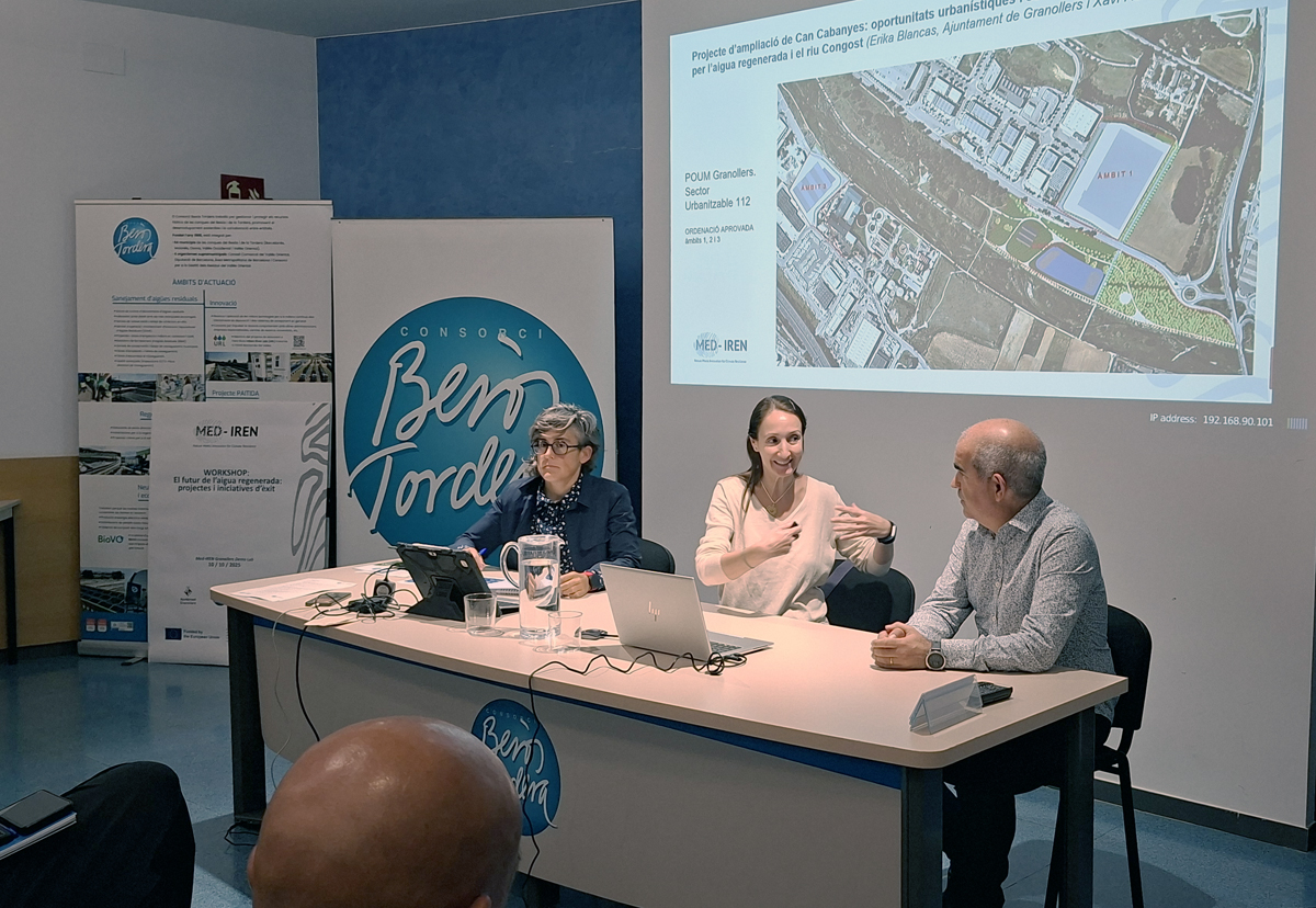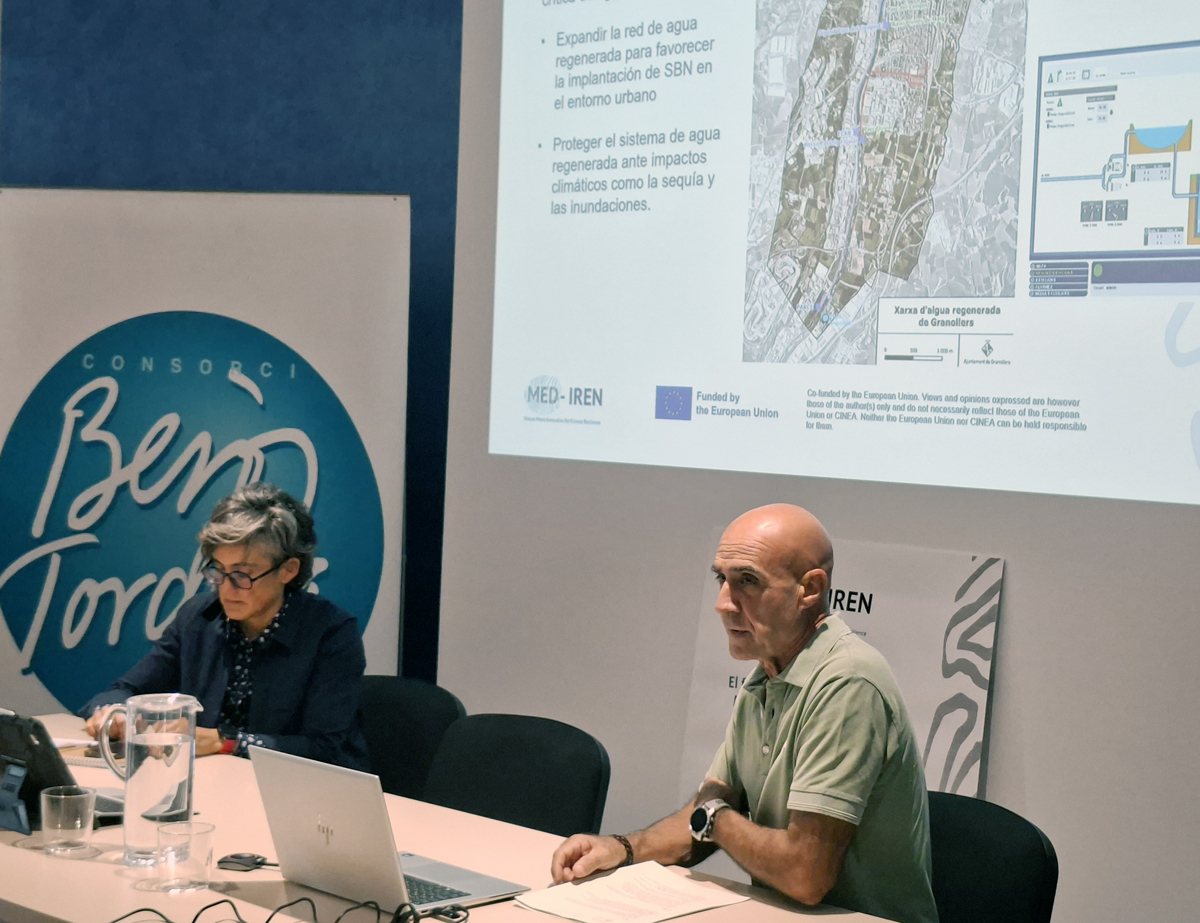 En la primera sessió, Xavier Romero, responsable de Medi Fluvial del Consorci Besòs Tordera i Quim Comas, cap del Servei de Medi Ambients i Espais Verds de l’Ajuntament de Granollers, van presentar els treballs del projecte Med-IREN i les seves intervencions a Granollers, impulsat conjuntament pel Consorci Besòs Tordera, l’Ajuntament de Granollers i el centre tecnològic Tecnalia. A continuació, es van exposar diverses iniciatives com el desenvolupament d’estacions de regeneració d’aigua a les EDAR de la conca del Besòs, a càrrec de Rut Estany, cap de Sistemes del Consorci Besòs Tordera, i el projecte d’aigua regenerada a Sabadell, explicat per Oriol Ferrer, tècnic de Medi Ambient de l’Ajuntament de Sabadell.