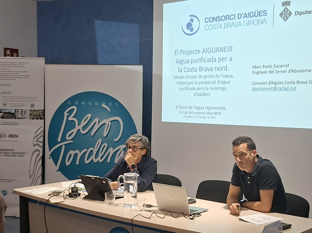 Una cinquantena de persones van participar el passat divendres, 10 d’octubre, en la jornada “El futur de l’aigua regenerada: projectes i iniciatives d’èxit”, celebrada a la seu del Consorci Besòs Tordera, a Granollers. L’acte s’emmarcava dins el projecte europeu Med-IREN, que té com a objectiu reforçar la resiliència de les infraestructures crítiques del Mediterrani davant els efectes del canvi climàtic, especialment els episodis de sequera.
